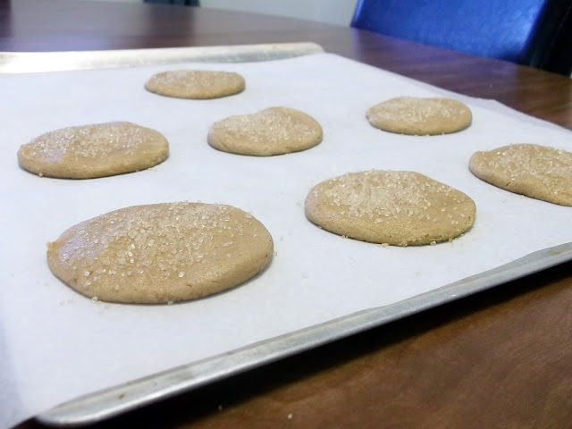 These cookies were left in for 11 minutes. The sprinkle of sugar makes them so lovely! And you can see how much they bend, even after 11 minutes. That's the molasses. Molasses is good.